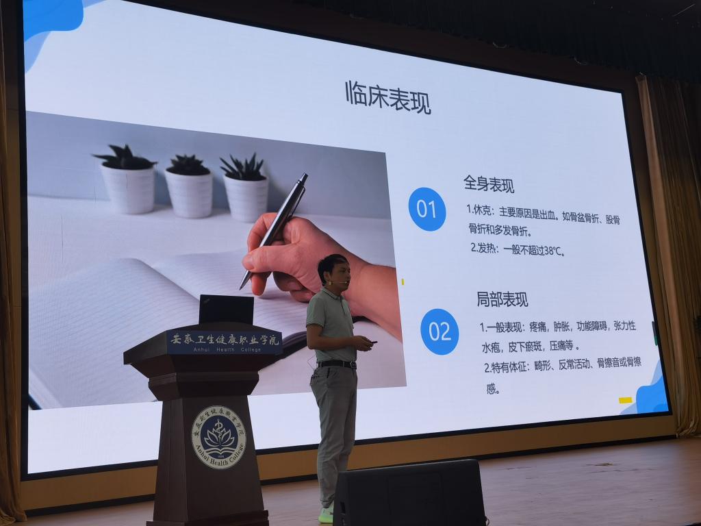 观摩课中,赵敏老师重点介绍了以“中国精神”为主题的思政课教学,使思政课课堂教学“活”起来、“火”起来,充分发挥了大学生思想政治教育主渠道作用;张时争老师从课程特点出发,深入挖掘专业课程蕴含的思想政治教育元素,对“骨折”这一知识点进行了详细地讲解。两位教师对知识点匠心独具、创新扎实的精彩讲解,展示了各具特色的教学设计和教学风采,实现了知识传授与价值引领相统一、教书与育人相统一,受到全体教师的高度评价。在点评环节中,学院各部门领导和王叙德依次从教案书写、台风教态、内容设计、语言表达、情感投入、教学亮点等方面对两位老师的教学展示进行点评,并提出改进意见和建议。