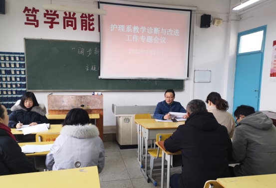2月23日下午,护理系召开教学诊断与改进工作专题会议。会议由护理系副主任徐婷主持,学院党委委员、护理系主任王叙德,副主任王锦、申永刚及各教研室主任参加会议。